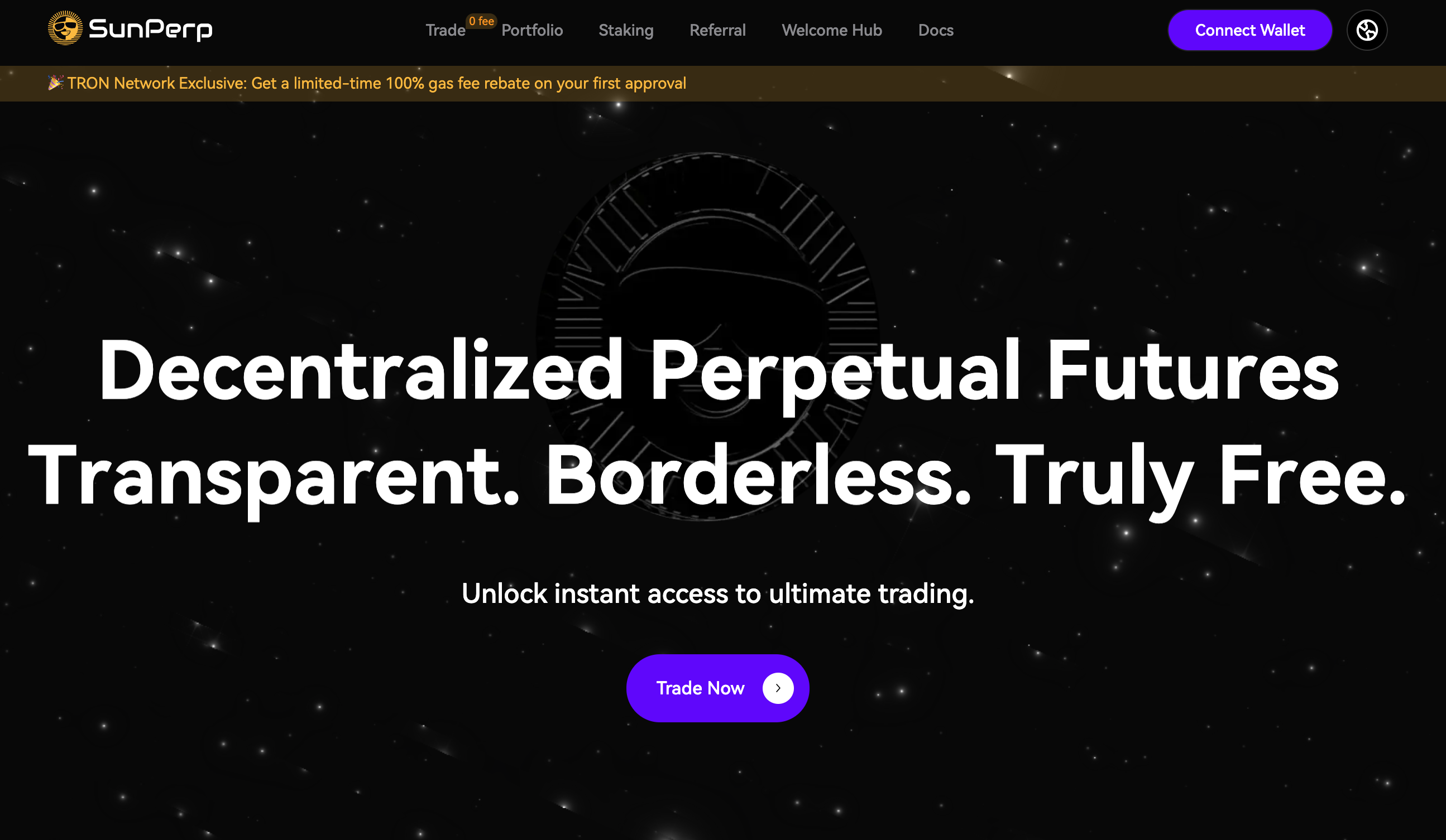 SunPerp is the first native PerpDEX within the TRON ecosystem. It leverages the TRON network’s core advantages: ultra-low transaction fees and the chain's market dominance in USDT stablecoin circulation, which allows it to offer a cost-effective trading environment. Its primary distinction, however, is its market focus. SunPerp is designed to be the first PerpDEX specifically tailored to better understand and cater to the needs of the Chinese crypto trading community, featuring a native Chinese brand, interface, and domain.